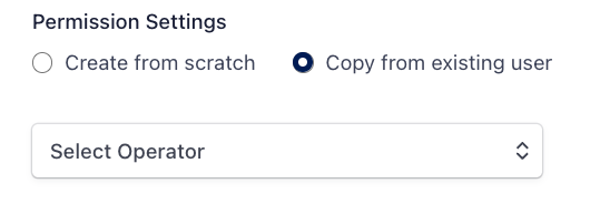 Copy from existing user → to duplicate permissions from another team member. Select the team member from the dropdown.