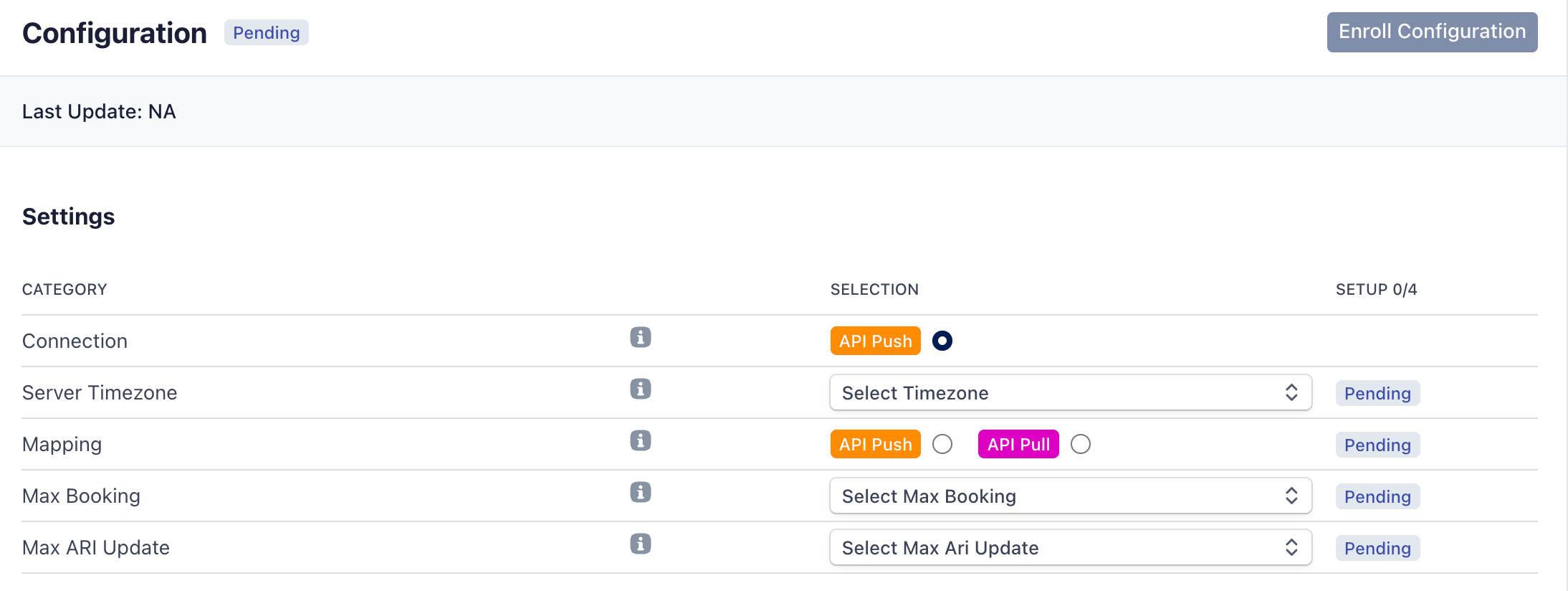 | Mapping | Defines how rooms and rate plans are mapped between your system and Bakuun. Supports API Push or API Pull depending on integration type. |