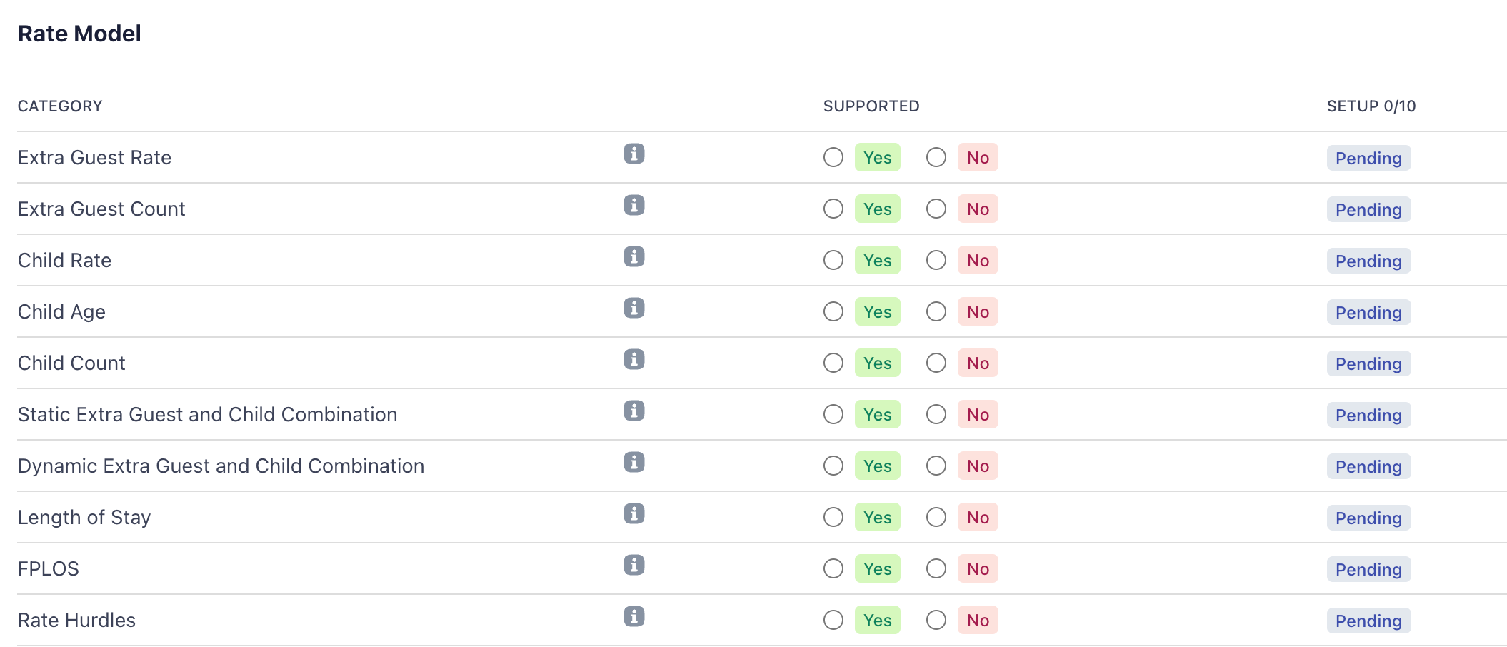 | Setup Progress (e.g., 0/10) | Indicates how many rate model components have been reviewed and configured. All required items must be completed before enrollment. |