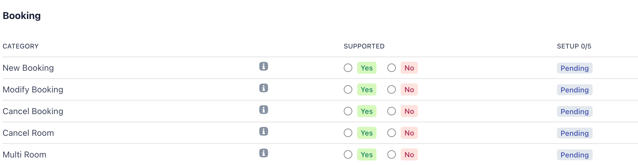 Each booking action must be marked as supported (Yes or No) before configuration can be enrolled.