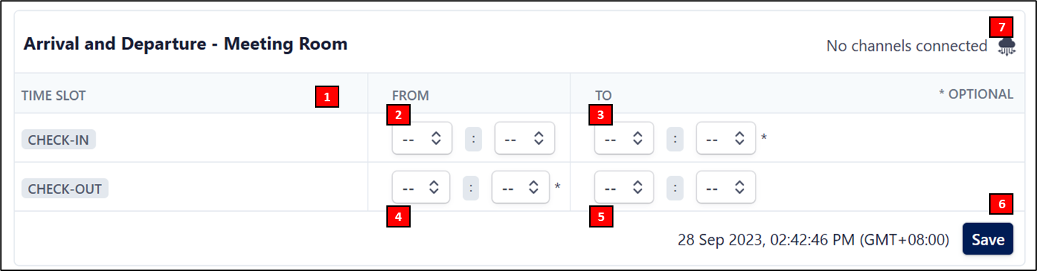 - Check-Out → Specify the earliest and latest time guests must check out of the meeting room.