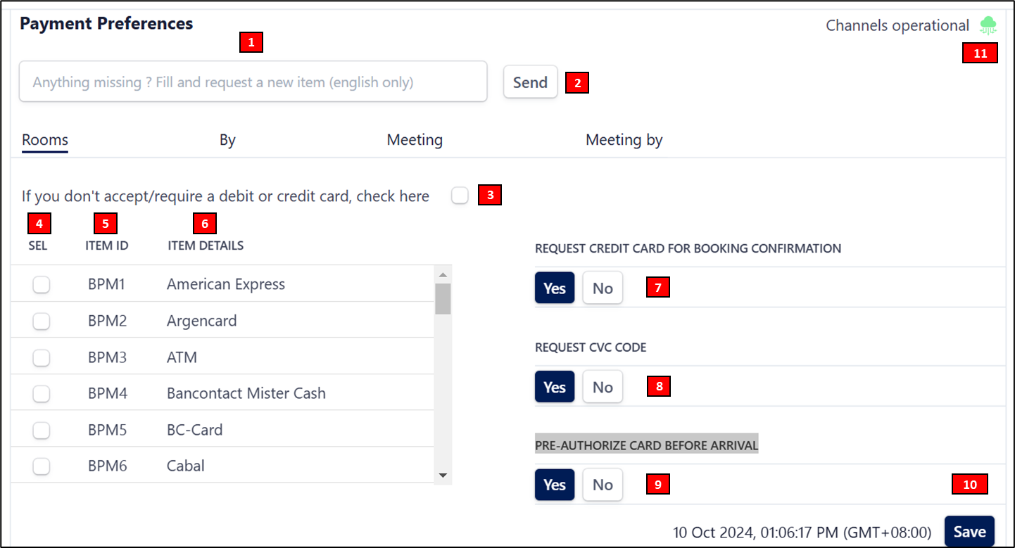 | (9) Pre-Authorize Card Before Arrival | Yes / No | Choose if you wish to pre-authorize a card before arrival. |