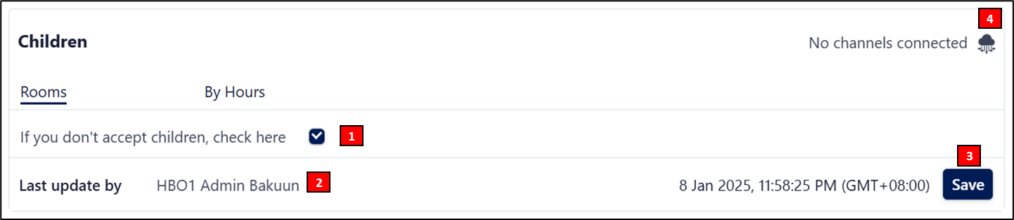 | (1) Children Accepted Checkbox | Check / Blank | Check the box if children are not accepted at your property. Leave blank if children are accepted. |