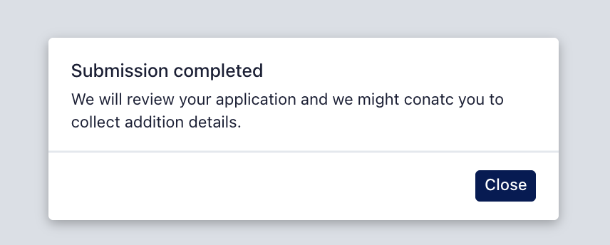 Click Submit once all required details are entered. You will see a message confirming your submission is under review.