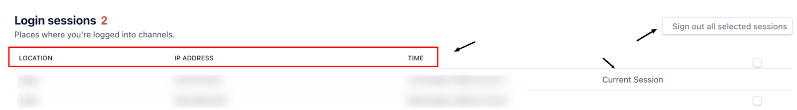Use the checkbox to select one or more sessions you want to log out of.