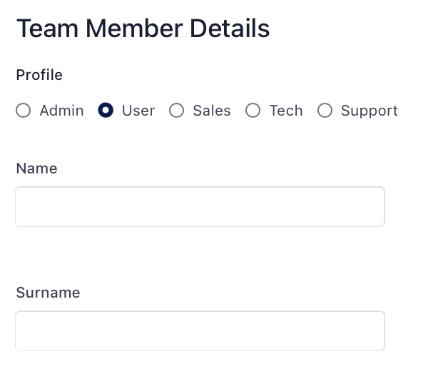 When you click the ➕ New Member button from the People section, the platform will open the below form. This allows you to add internal team members and configure their role and access permissions based on your organization’s structure.