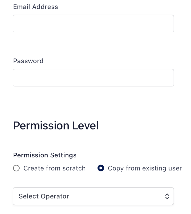 - Use the Copy from existing user option to quickly onboard users with the same responsibilities.