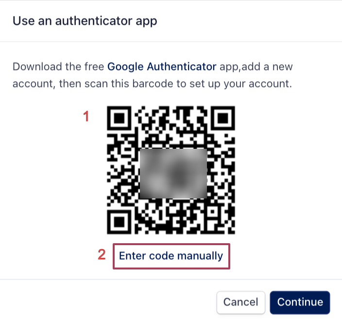 Authenticator App (e.g., Google Authenticator) → scan the QR code or enter the setup key manually.