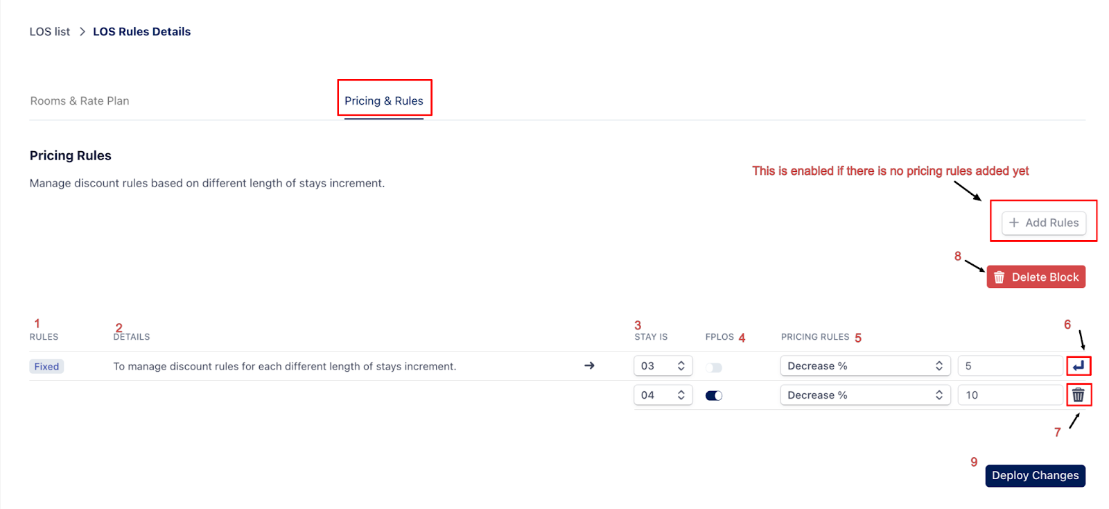 | (9) Deploy Changes | Finalize and apply your rules to the selected rate plans. |