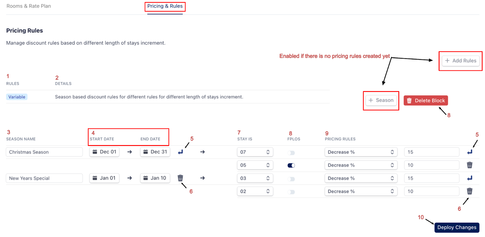 | (10) Deploy Changes | Finalize and apply your rules to the selected rate plans. |
