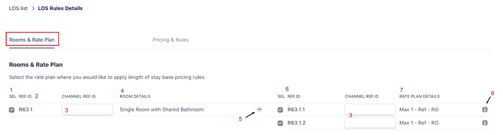 Table Reference – LOS Rules Details – Rooms & Rate Plan