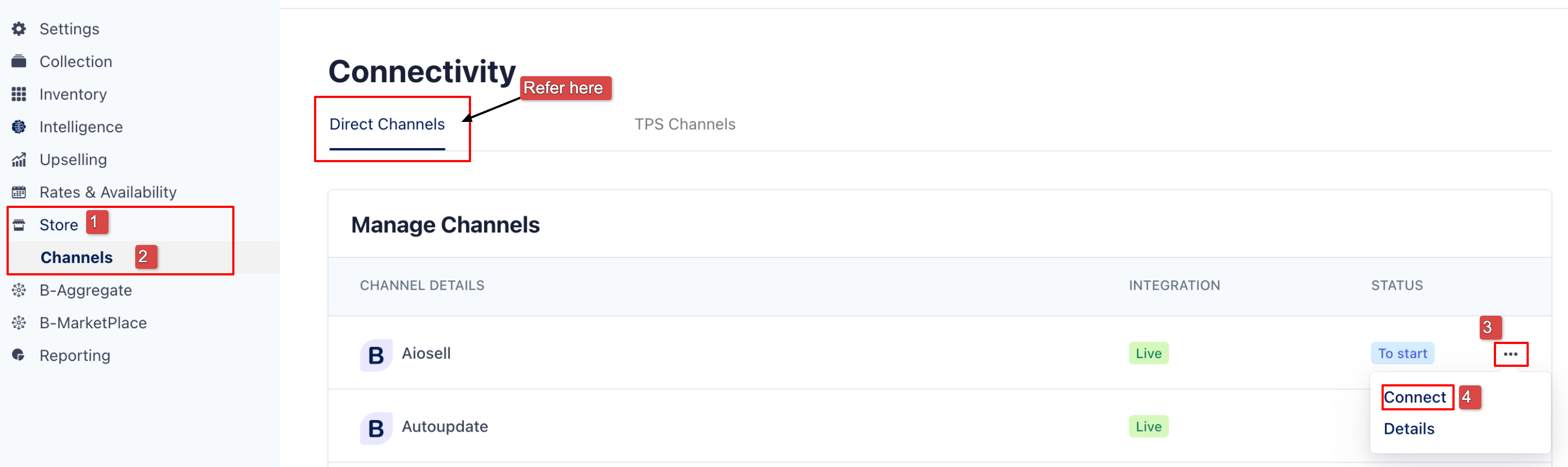 - Connect → starts the channel setup process