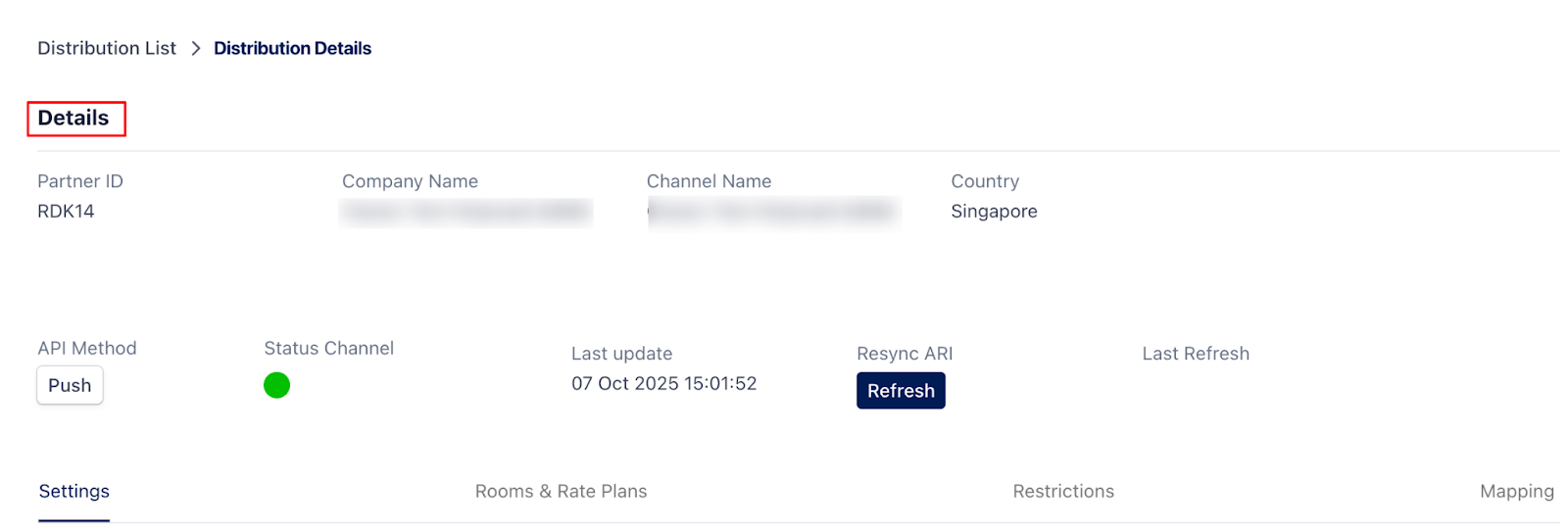 The Distribution Details page provides technical and commercial configuration details for the selected Demand Partner.