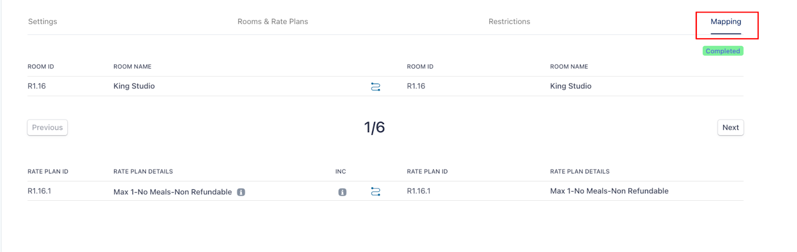 This section shows how the property’s rooms and rate plans are mapped to the corresponding setup on the Demand Partner’s side.