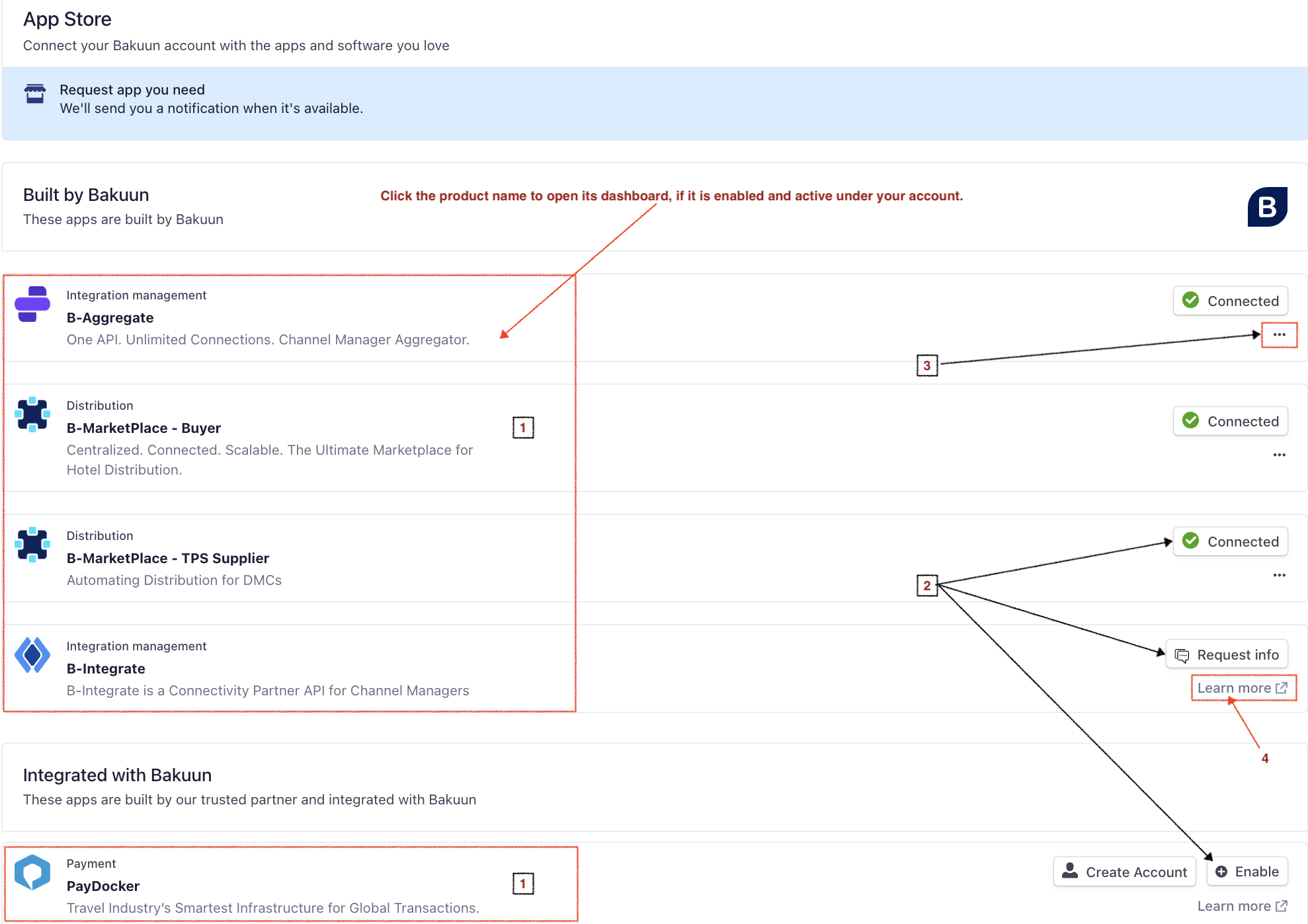 Connected → Indicates the app/product is active and ready to use Enable → Click to activate the app if it’s not yet connected, this is subject to verification. |