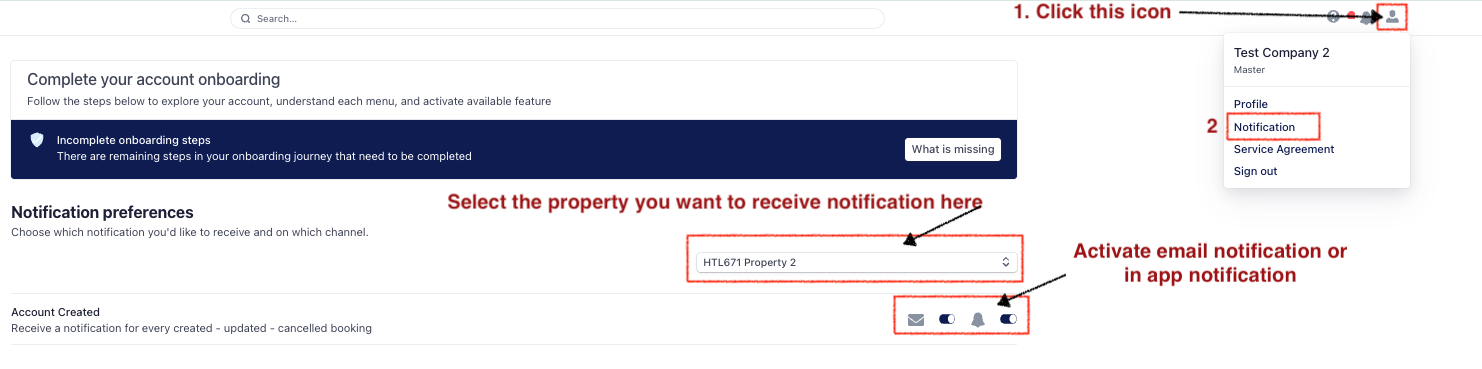 Under Notification Preferences, use the dropdown to select the property you want to receive updates for.