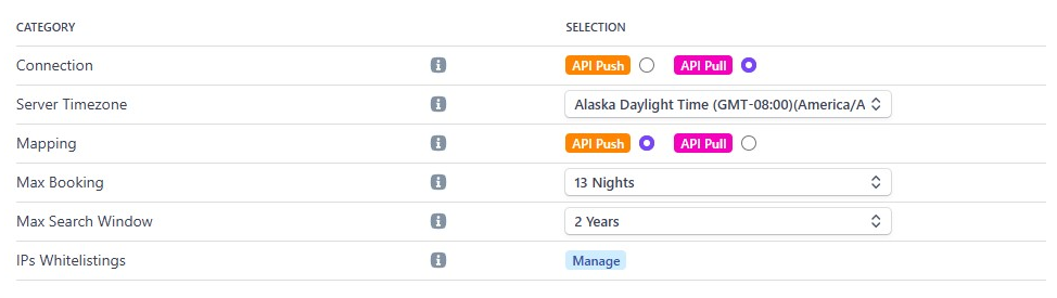 Indicates how the room and rate data is integrated. Like Connection, this can be API Push or API Pull (Read). |