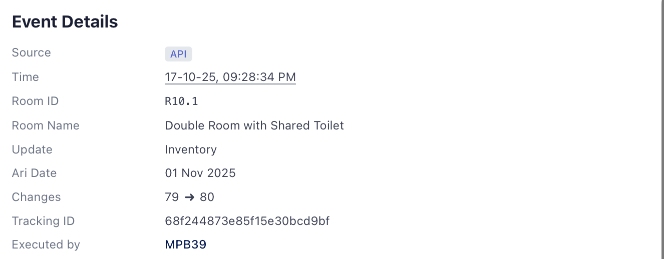 ✨ Tip: If inventory or rate updates fail to appear, always check the Events section first to confirm whether the request was received and successfully processed.