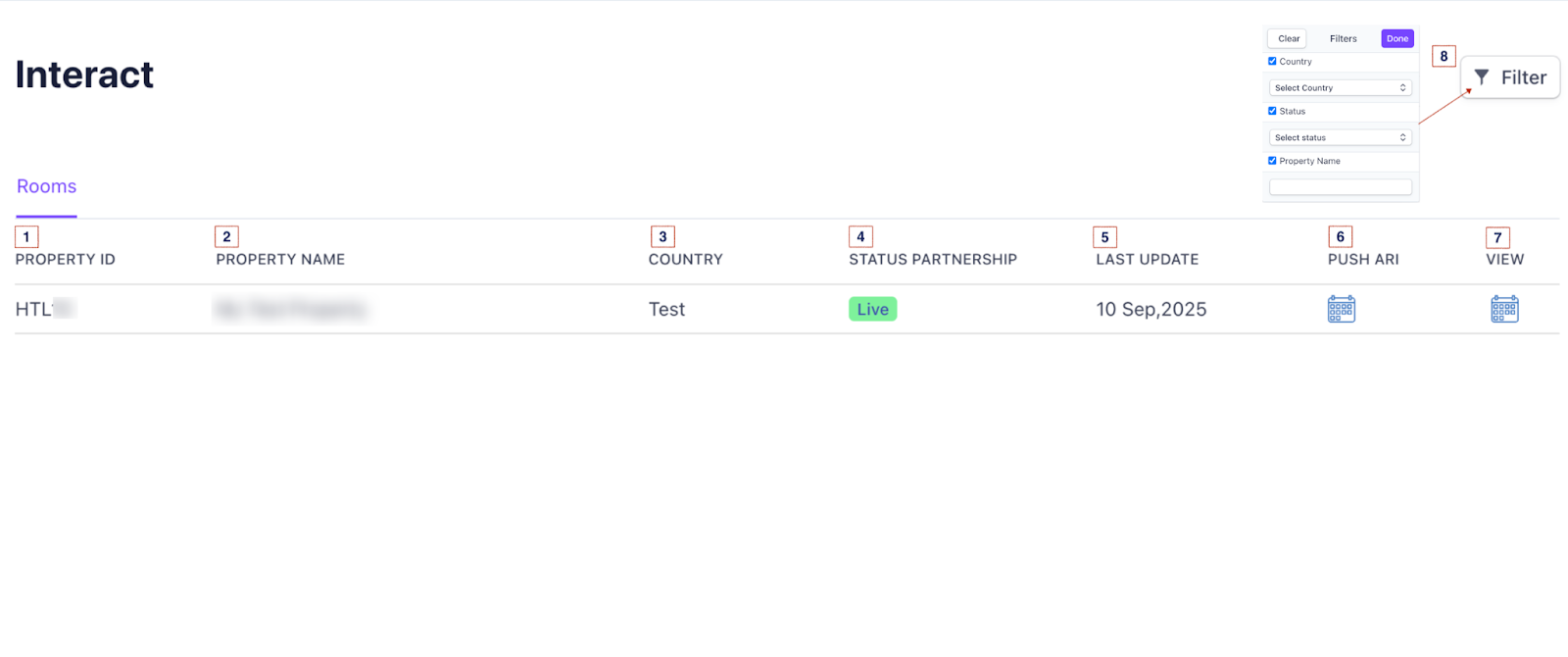 This section allows you to test and monitor your connection with each property. From here, you can manually push ARI, check the property’s live status, and open the property’s Plan Page view to simulate how your data appears in production. This is helpful for both testing and debugging.