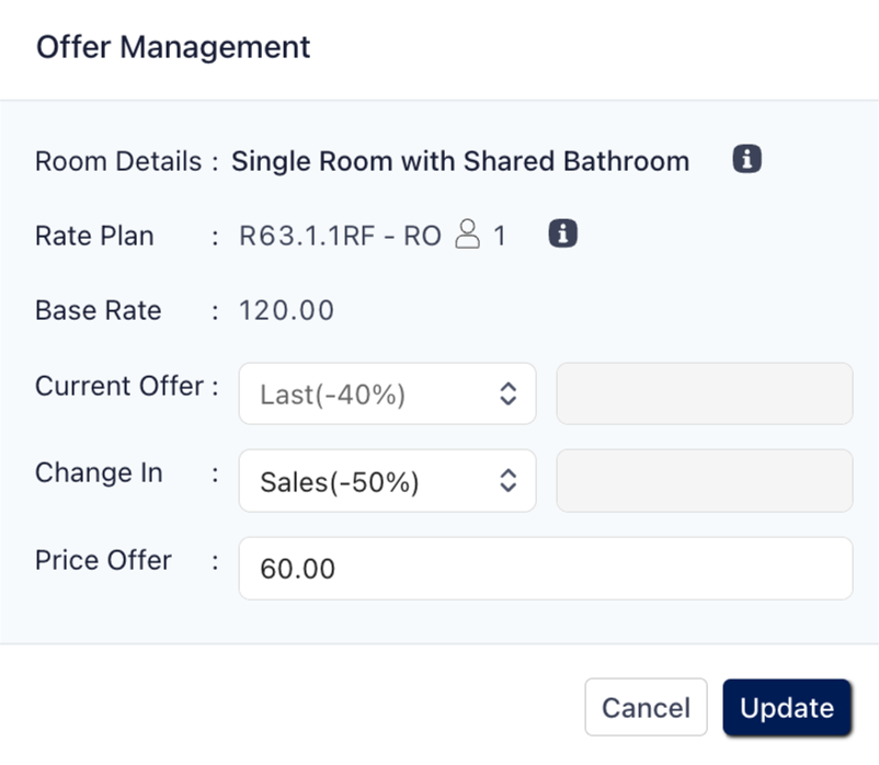 📝 Note: This tool is especially useful for overriding or tweaking dynamic offers temporarily without needing to update LOS rules or automated pricing logic.