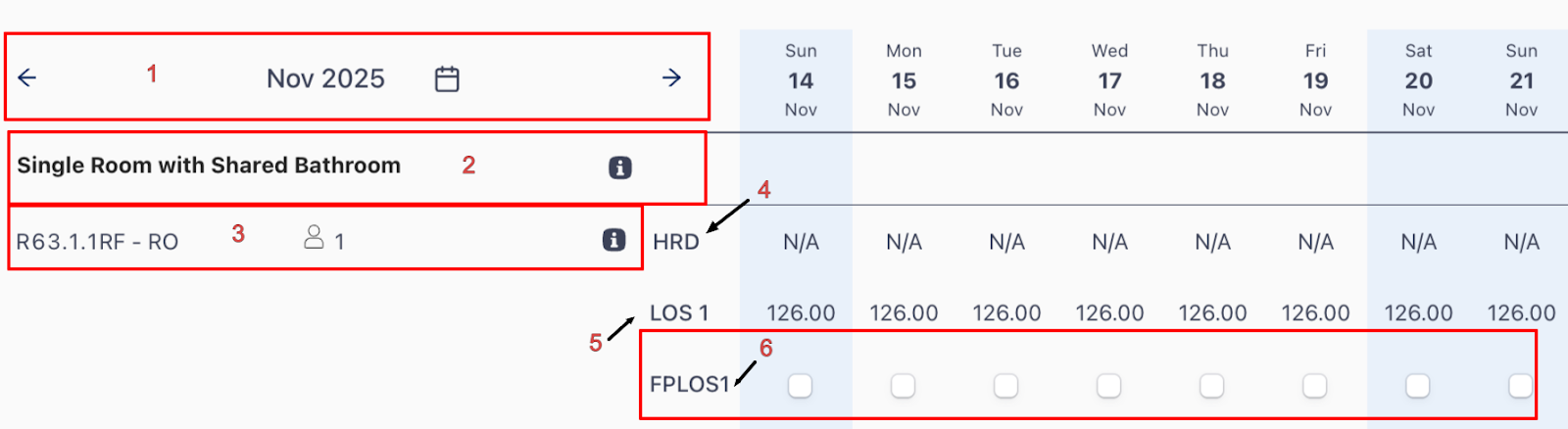 | (6) ℹ️ Cancellation Policy | Hover to view the cancellation policy applicable for that rate plan and date. |