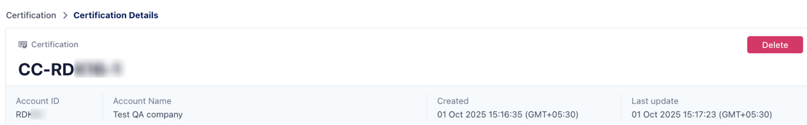 Certification → Certification Details