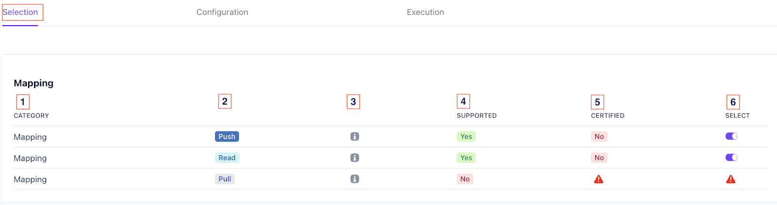 Certification Details → Selection → Mapping