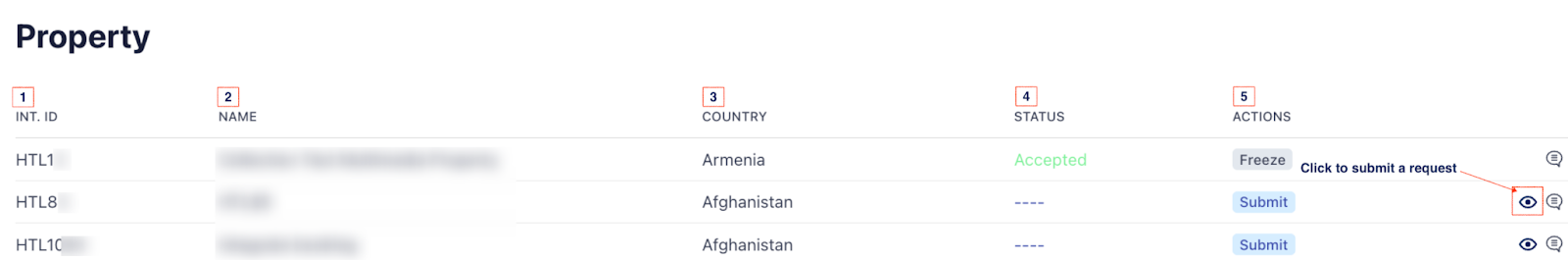 | Once the status is Accepted, the Freeze button appears here. Use it to temporarily suspend integration with the property. |