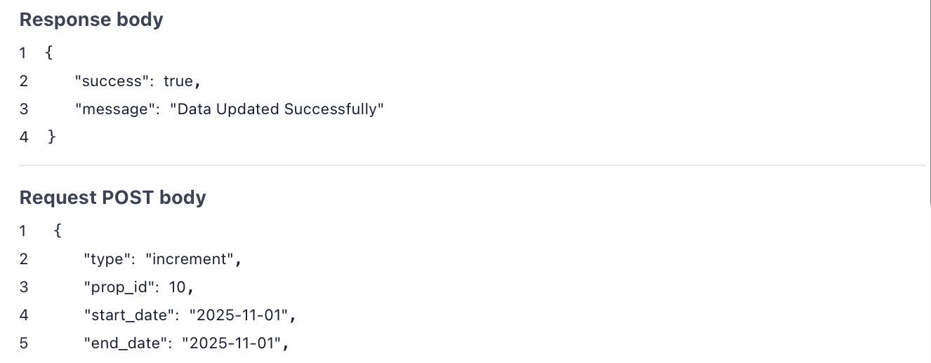 This section allows you to manually simulate or bulk update ARI (Availability, Rates, and Inventory) data to review your integration and trigger API endpoints configured during the setup. This is especially useful for verifying that your ARI pushes are correctly processed and reflected on the plan.