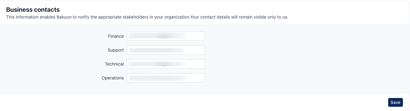 These contacts are used by Bakuun to ensure the right person is notified when needed.